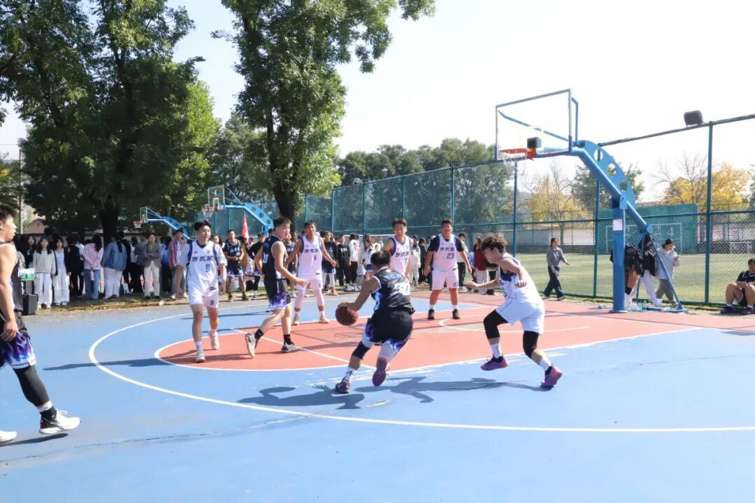 在我系篮球啦啦操队员的精彩表演中,本届篮球赛拉开帷幕。赛场上,我系和历史与旅游管理系展开了首场激烈的对决。球员们积极配合,健步如飞,锐不可当,传球、运球、投篮动作一气呵成,篮球画出一道道优美的弧线,精准落入篮筐,场外观众热情似火,欢呼声此起彼伏,整个球场充满了激情与热血。