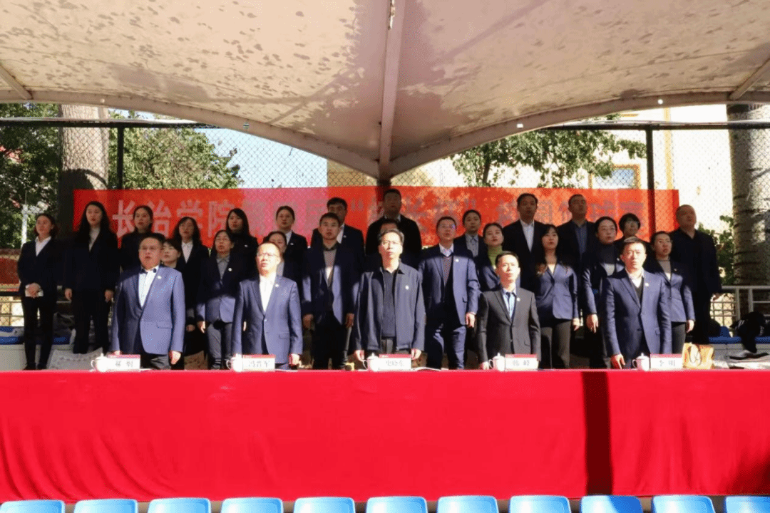 全体师生起立奏唱国歌。史晓东致辞讲话,指出比赛倡导健康活力的校园文化,希望裁判员严格遵守竞赛规则,确保比赛公平公正,球员们要秉持体育精神参赛,相互尊重,公平竞争,展现长院学子积极向上、活力四射的精神风貌。