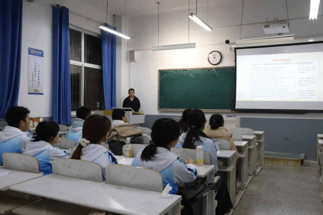 党课伊始,郑巧珍从思想引领和职业赋能两方面引入本次党课主题,观看回顾视频,系统梳理“十四五”规划的实施成果与核心要义,为后续学习筑牢基础。在“十五五”规划专题讲解环节,课程采用双视角解读模式:从备考公务员角度出发,组织学生展开深度讨论,引导大家结合考公备考需求,精准把握政策考点与答题思路;从顶层设计角度切入,郑巧珍系统拆解“十五五”规划的整体框架,针对科技创新、对外开放、农业农村等重点领域进行着重剖析,帮助学生理清政策出台的战略考量。最后从重点领域、新兴领域、涉外领域、乡村振兴四个方面为以后的就业方向提出了建议。