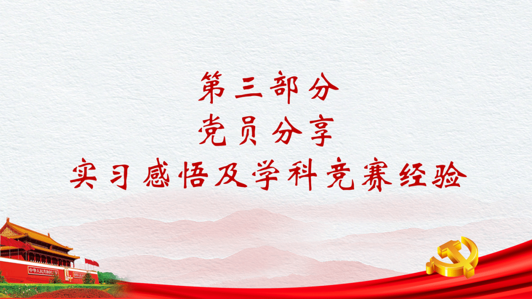 在交流分享环节,几位学生党员结合自身经历,分别分享了在专业实习与学科竞赛中的收获与感悟: