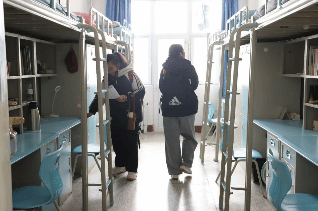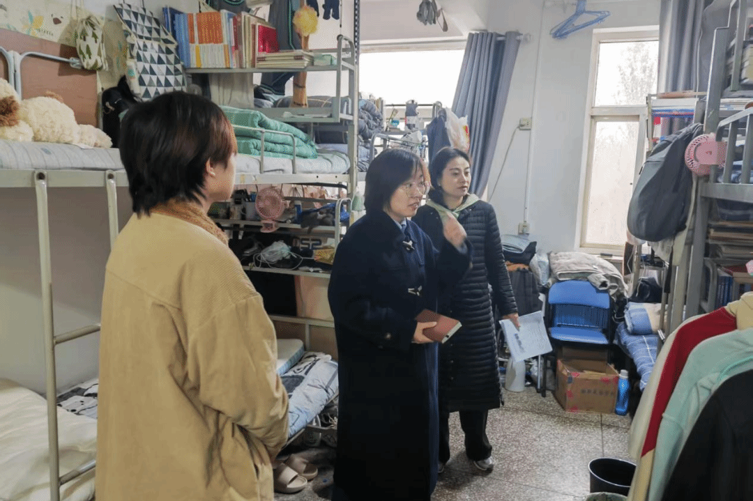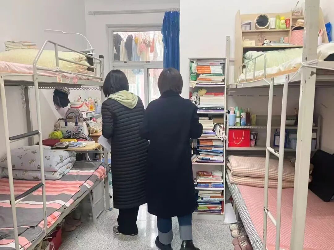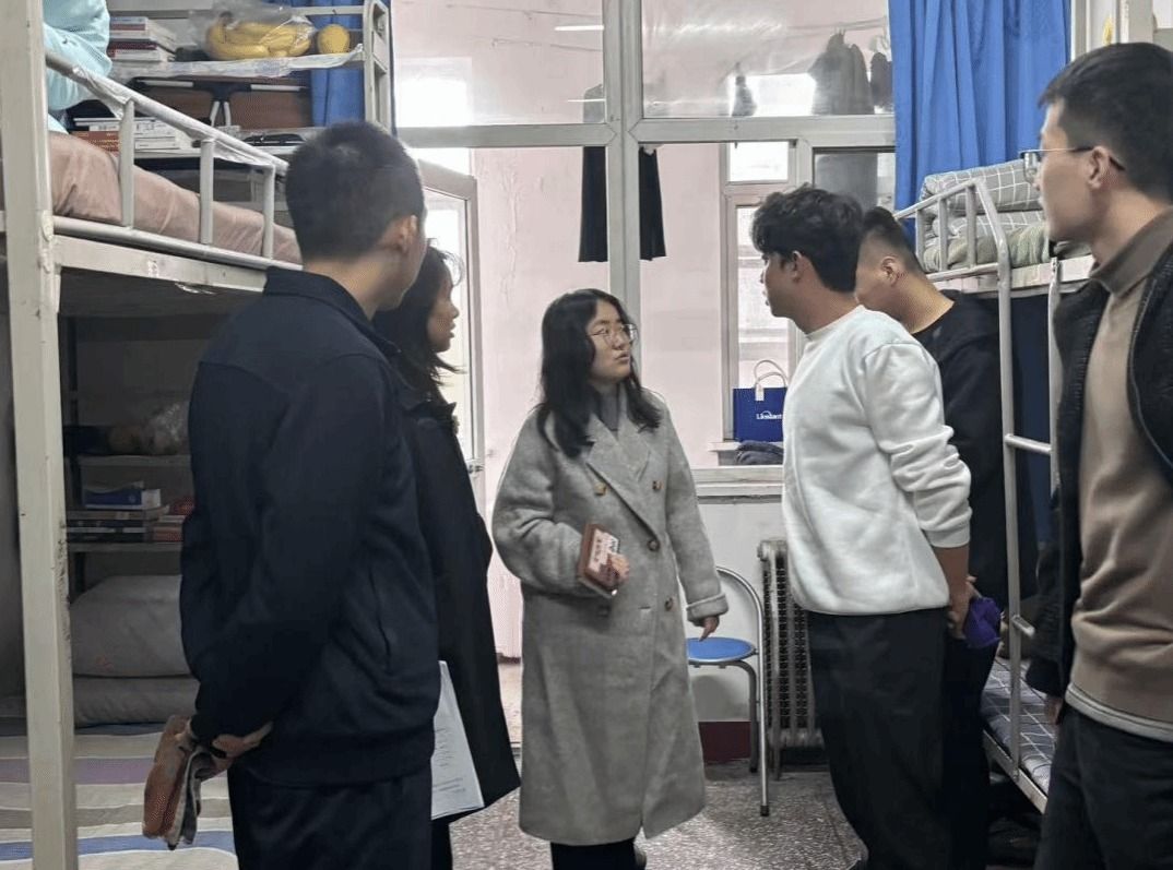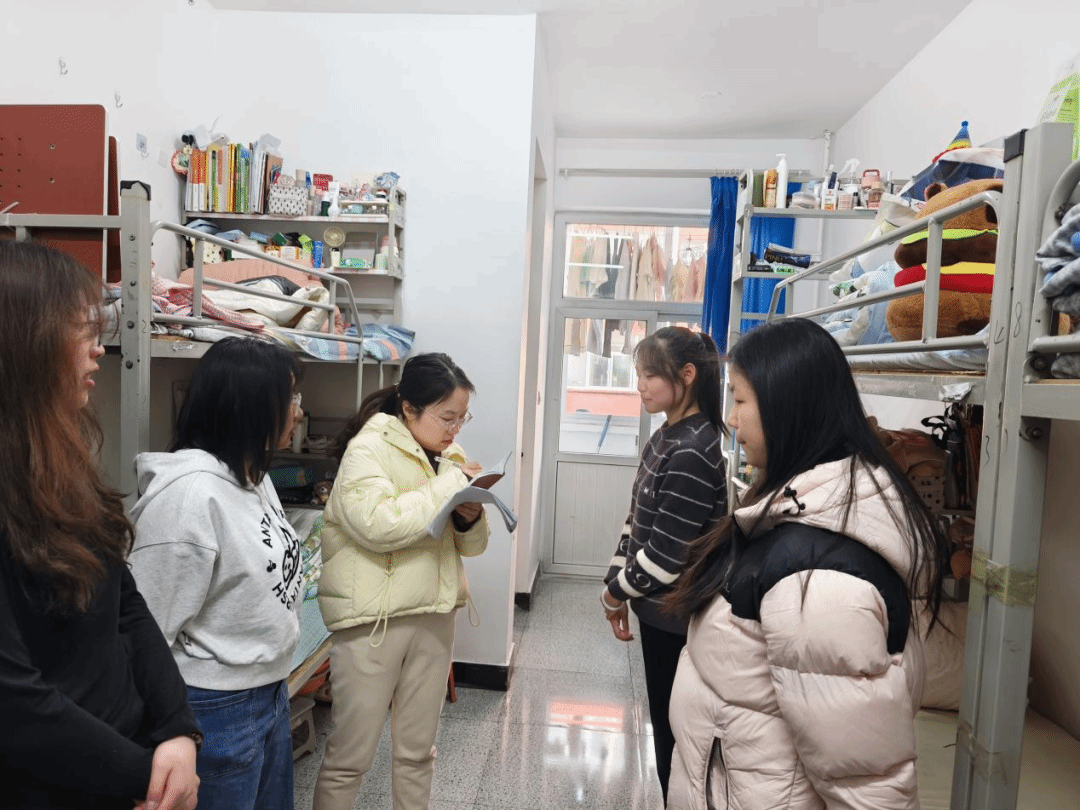 在宿舍实地考评当日,评审团采取“现场打分”与“互动交流”相结合的方式,深入每一间参评宿舍。他们不仅严格对照标准核查卫生死角与安全隐患,更着重关注各宿舍的文化建设成果。评审老师与学生干部认真听取舍员们关于宿舍装饰理念、值日制度、学习氛围营造等方面的介绍,并就如何进一步提升居住体验、加强室友协作等话题与同学们进行了亲切交流。这一过程不仅是一次考核,更成为了一堂生动的集体生活教育课,引导学生在实践中理解规则意识、团队精神与和谐包容的宿舍文化内涵。