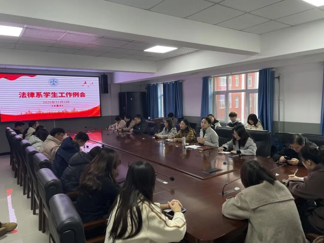 为进一步筑牢校园安全稳定防线,扎实推进11月线上评估及12月专家进校审核评估筹备工作,法律系于11月2日在立法基地召开11月学生工作例会,系党委书记吴海霞、党委副书记王倩、团委副书记赵宁、办公室副主任范丹丹,辅导员贺永泉、李佳老师出席,学生会主席团及各班班委代表参会。
