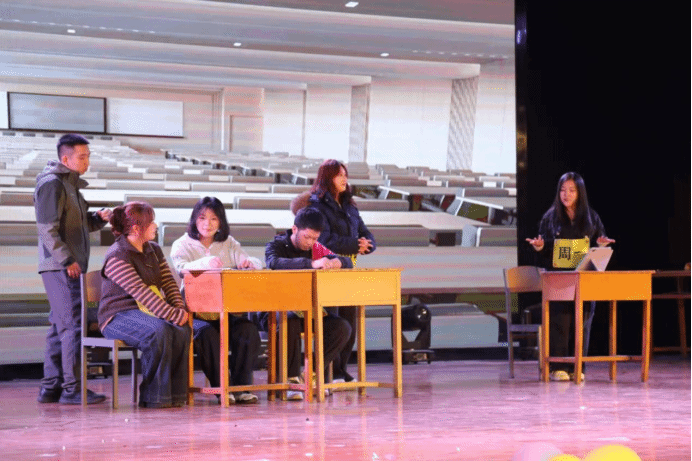 小品《甄嬛后传》以反串演绎和密集笑料颠覆经典,让人捧腹不已;歌曲《平凡的一天》《我只在乎你》用温柔旋律传递真挚情感;独舞《恋爱告急》以灵动舞姿勾勒青涩情愫;新编《孔雀东南飞》以法律视角重构经典故事,让传统悲剧焕发法治智慧;话剧《亮剑》重现家国大义与个人情感的艰难抉择,情节震撼人心。退役大学生士兵带来的合唱《当那一天来临》,旋律激昂、气势磅礴,歌声中满是保家卫国的铁血担当与逐梦青春的昂扬豪情,展现了退役不褪色、初心永滚烫的精神风貌,深深感染了现场每一位观众。舞蹈《我的未来式》用活力舞步勾勒未来的无限可能,随后学生家长登台独唱任贤齐的《有梦的人》,深情歌声满含对学子逐梦前行的期许,为晚会增添了温馨氛围。朗诵《法在我心中》以铿锵有力的语调,诠释了法律人的信仰与坚守,既展现出笃信法理、追求正义的专业素养,也彰显了系部深耕法治教育、培育高素质人才的育人成效,尽显法律人的责任与担当。