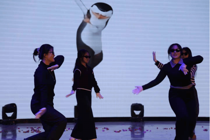 歌曲《刻在我心底的名字》深情婉转,诉说着藏在记忆深处的牵挂;小品《谁偷走了周日》以幽默笔触解构日常拖延困境,引发全场共鸣;舞蹈《古今中外》将东方美学与西方街舞创意融合,展现跨时空的文化碰撞;赵宁、李佳、李强、郑巧珍四位老师联袂唱响《追光者》,老师们以温暖真挚的旋律,诠释了教育工作者既是知识的传授者,更是学生成长路上的“追光者”与“点灯人”的初心担当,深深打动了现场观众,赢得阵阵掌声。