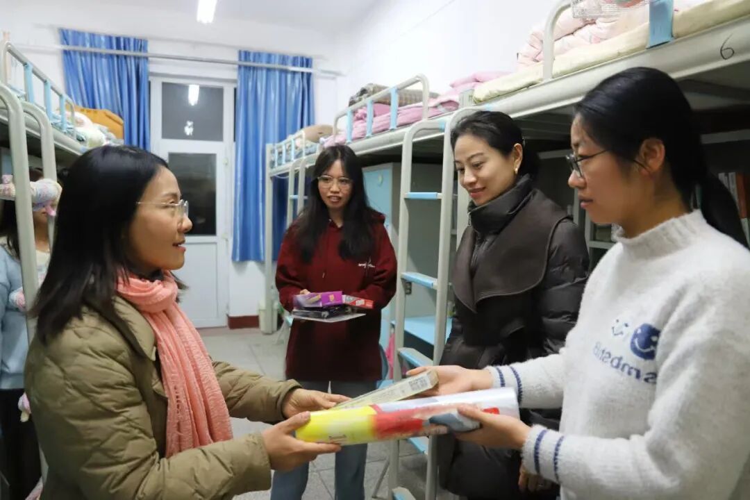 12月25日,系领导班子成员与辅导员一同走进学生宿舍,开展关怀慰问活动。老师们与同学们亲切交谈,细致了解大家在校的学习进展与生活状况,尤其关注来自南方的同学是否适应北方干燥寒冷的气候,并贴心叮嘱防寒保暖。交流之余,系里还为各宿舍送上了羽毛球、乒乓球、五子棋、跳绳等文体用品,鼓励同学们在课余时间积极锻炼、劳逸结合,在集体活动中增进友谊、凝聚归属。一句“平时常运动吗?”“学习累了可以一起下棋放松”的温暖提醒,不仅贴近学生实际需求,更在无形中传递出法律系始终陪伴学生全面成长、营造健康积极氛围的育人初心。