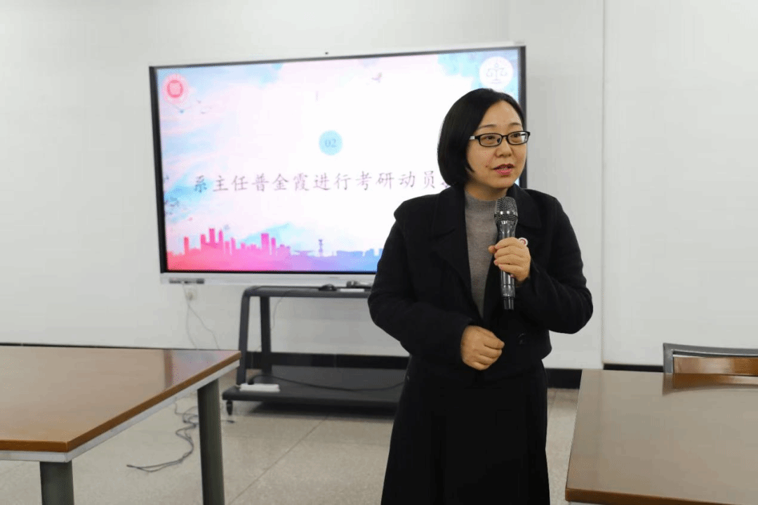 裴宝莉针对23级学生实习工作进行专项指导,清晰列明实习鉴定表、手册、协议等必备材料清单,对自主实习学生的后期材料报送、实习总结撰写作出具体规定。她勉励学生做到实习与备考“两不误、两促进”,凭借扎实付出与不懈坚持冲刺法考、考研目标,还通过鲜活实例分享,帮助学生坚定备考决心。