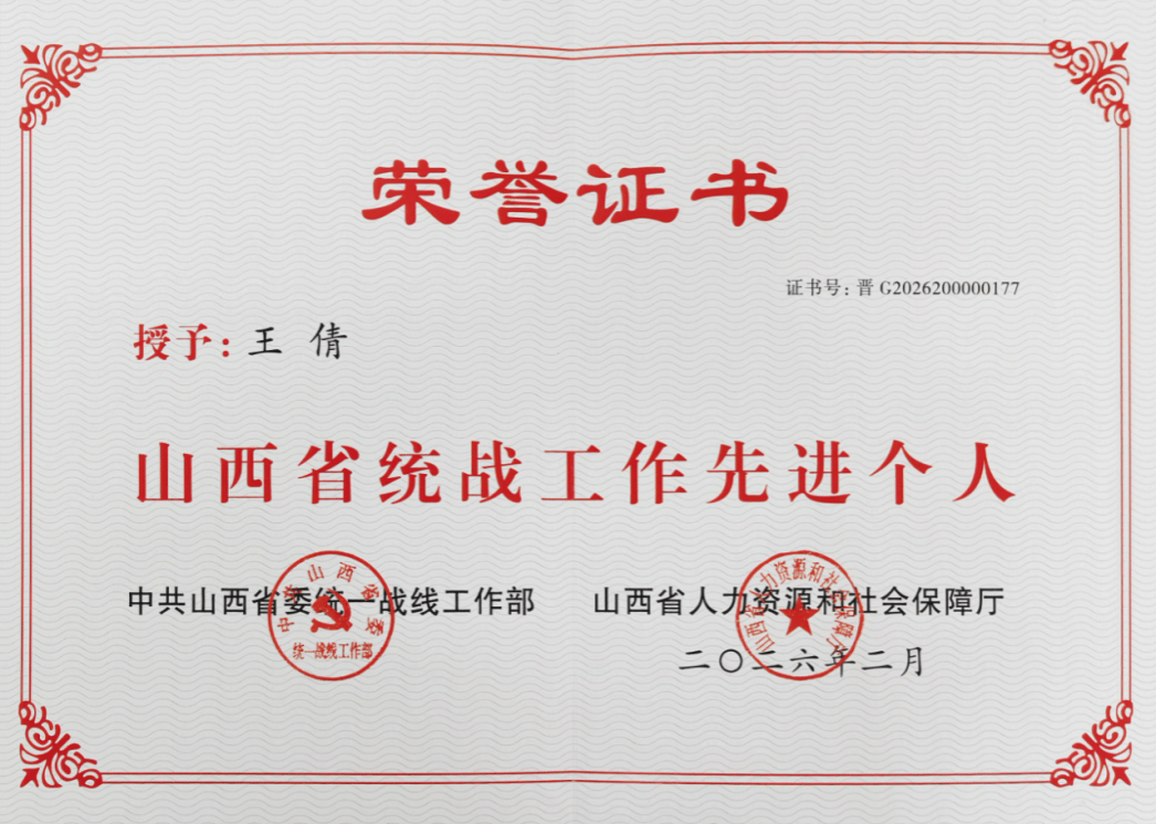 近日,山西省委统战部、山西省人力资源和社会保障厅发布表彰决定,授予一批在全省统一战线工作中表现突出的先进集体与个人荣誉称号。我系党委副书记王倩光荣获评“山西省统战工作先进个人”。