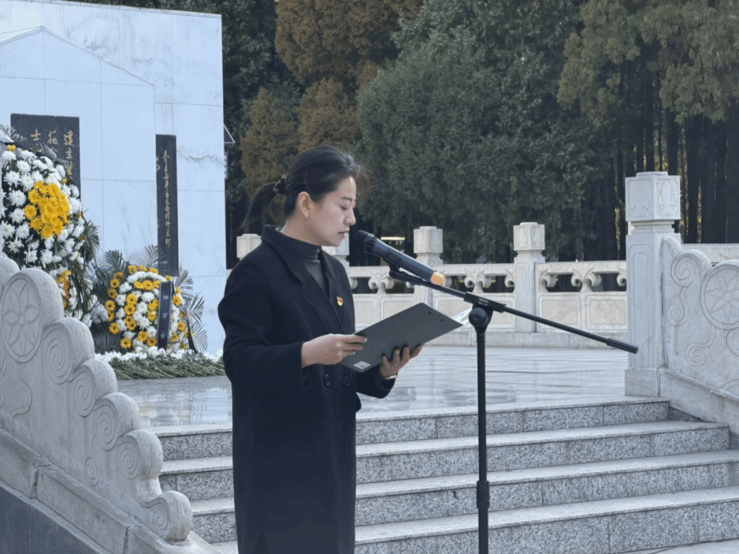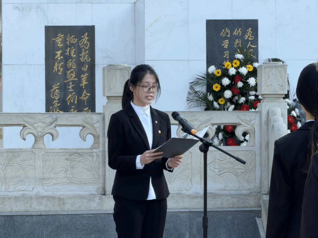 默哀毕,王倩老师进行讲话,回顾太行太岳革命根据地的光辉历史,强调新时代青年学子要传承英烈精神,将个人理想融入法治中国建设。