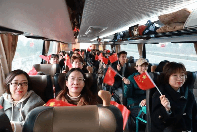 行车途中,《团结就是力量》《没有共产党就没有新中国》等经典红歌旋律相继奏响。师生齐声歌唱,铿锵有力的歌声回荡在车内。大家挥舞着小国旗,打着节拍,眼神坚定、神情昂扬,奋进的力量在合唱中凝聚,为此次活动营造了良好氛围。
