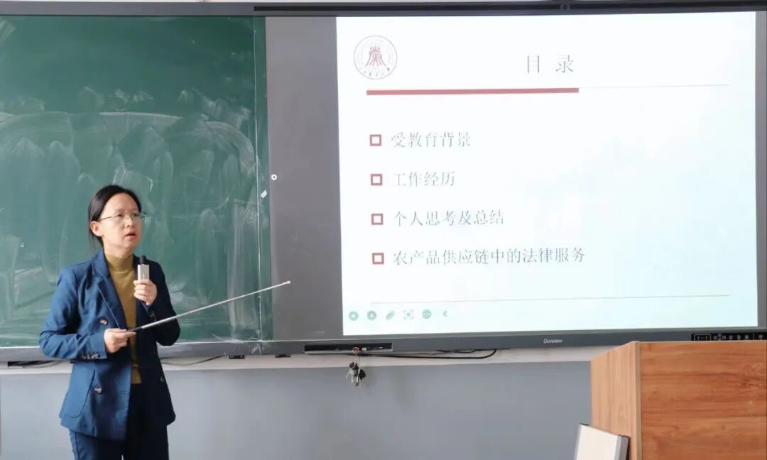 为提高同学们对法学专业的认知、职业规划能力及对涉农法律领域的关注,10月25日,法律系在逸夫楼305教室邀请杨弼君博士开展农产品供应链中的法律问题主题讲座。法律系理论法学教研室主任常云云,2401班辅导员陈晴老师出席本次活动。法律系2024级、2025级本科生到场学习。