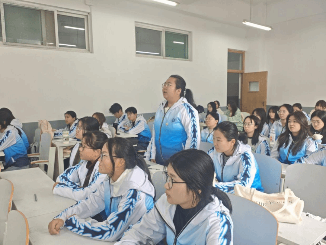 系党委副书记王倩以“歌声中的初心与使命”为主题,通过一堂音乐团课的形式,带领同学们在红色旋律中感悟家国情怀。课堂开篇,王倩以抗战胜利80周年大阅兵千人大合唱为切入点,围绕四首经典合唱歌曲与在场团员展开互动交流,迅速点燃现场氛围。课程重点聚焦红色经典歌曲《在太行山上》,她详细回顾了歌曲诞生的时代背景,深入阐释了歌词背后的深刻意义,引导团员们从历史维度理解旋律中的初心力量。随后,她带领全体团员共同学唱歌曲,团员们积极响应、精神饱满,迅速融入合唱状态。课程尾声,全体团员以饱含深情的《在太行山上》大合唱收尾,激昂的歌声不仅传递出青春朝气,更让大家真切体会到红色音乐中蕴藏的爱国热忱与责任担当。
