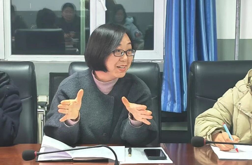 普金霞从四个方面进行了强调:教学进度须与授课计划表严格匹配;作业布置与批改需达标;期中测试须融入整体课程评价,留存完整记录;听课任务需按时完成,以互查互促提升教学水平。