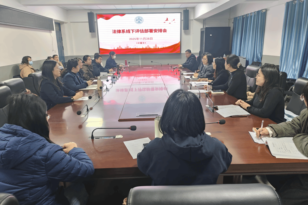 为迎接即将到来的教育部本科教育教学审核评估专家组线下考察工作,确保各项评估任务高效、有序进行,法律系于11月28日在地方立法研究咨询基地召开了本科教育教学审核评估线下部署安排会。系副主任(主持工作)普金霞主持,全体教职工参加。